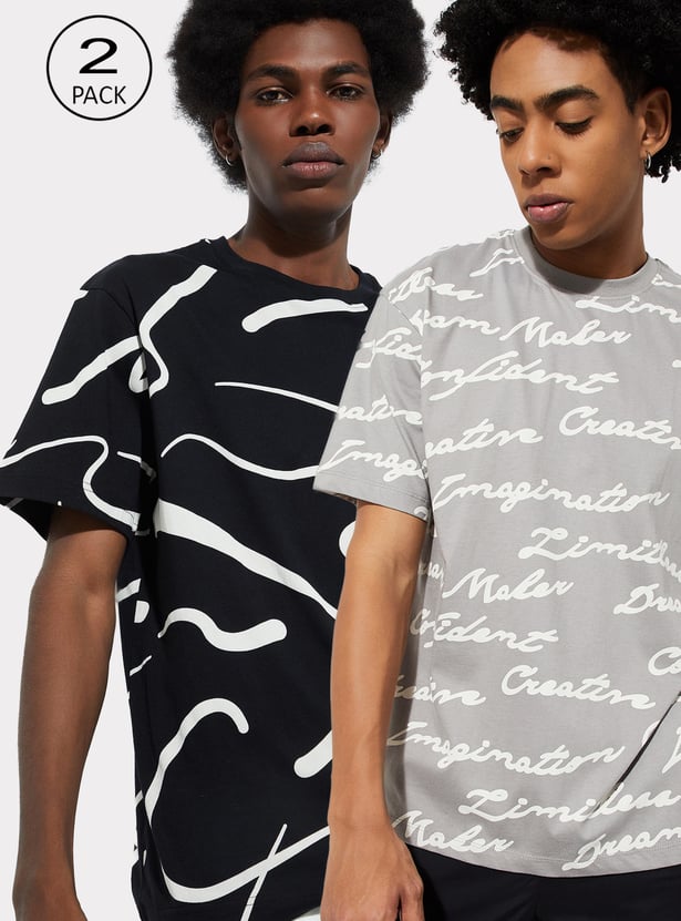 This pack of two printed T-shirts features classic crew necklines and half sleeves, offering easy comfort paired with bold, everyday style.