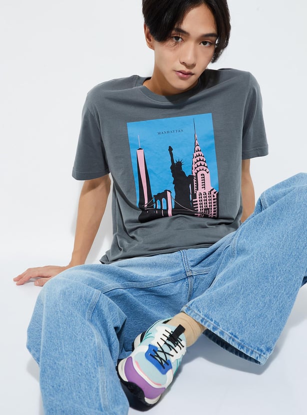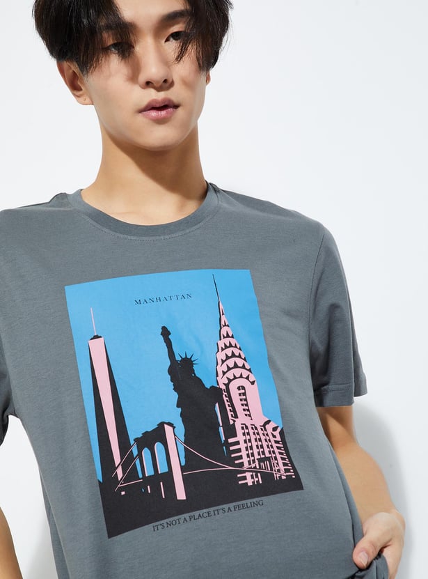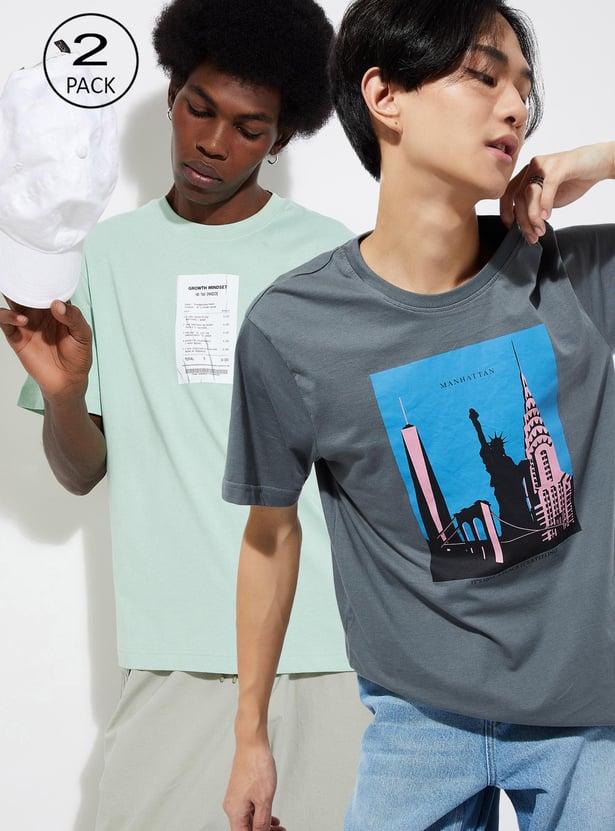 Refresh your casual staples with this pack of two printed T-shirts. Designed with a classic crew neck and half sleeves, these tees combine everyday comfort with standout prints — ideal for layering or wearing solo.
