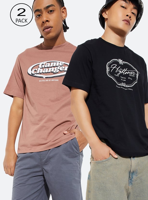 Refresh your basics with this pack of 2 printed T-shirts, featuring classic crew necklines and half sleeves. Soft, breathable, and versatile—perfect for everyday wear.