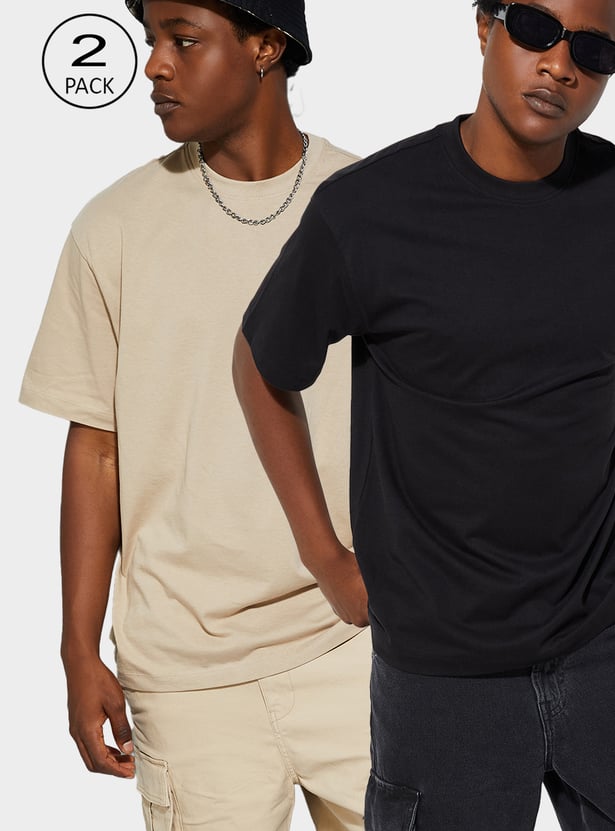 Refresh your basics with this pack of 2 solid T-shirts, a go-to for everyday comfort and versatility. Designed with a classic crew neck and half sleeves, they're ideal for layering or wearing solo.
