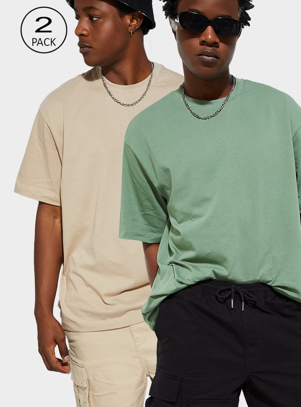 Refresh your basics with this pack of 2 solid T-shirts, a go-to for everyday comfort and versatility. Designed with a classic crew neck and half sleeves, they're ideal for layering or wearing solo.