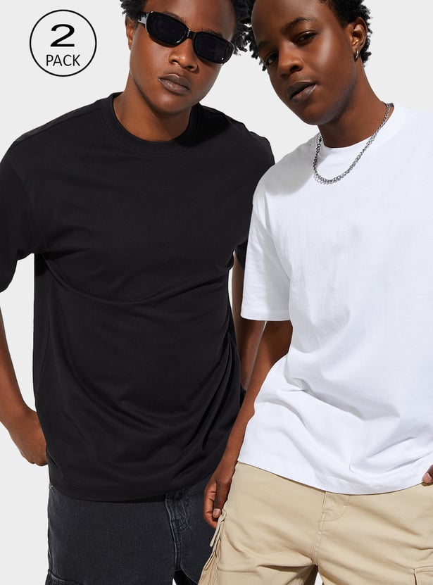 Keep it classic with this pack of 2 solid T-shirts, a staple for everyday wear. Designed with a timeless crew neck and half sleeves, they offer comfort and versatility in equal measure.