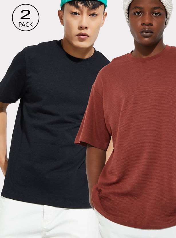 This pack of two solid T-shirts features clean crew necklines and half sleeves, offering a timeless, easy-to-style essential for everyday wear.