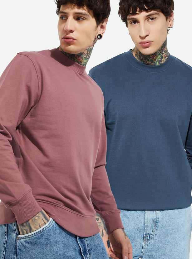 Step up your style with this solid pullover sweatshirt in a pack of 2. Featuring a minimalistic design, it boasts a crew neck and full sleeves for a classic look. The ribbed hem and cuffs add subtle detailing, making it a versatile choice for casual outings.