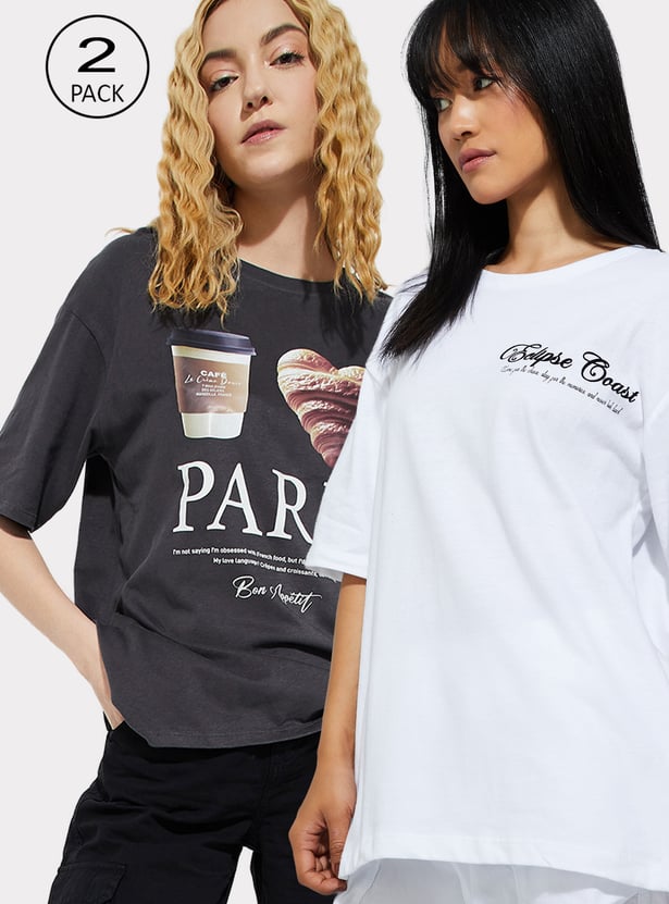 URB_N Women Graphic Print Boxy T-shirts - Pack of 2