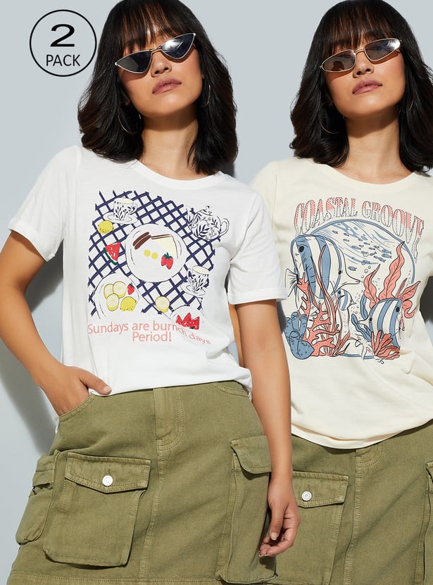 URB_N Women Graphic Printed T-shirt - Pack of 2