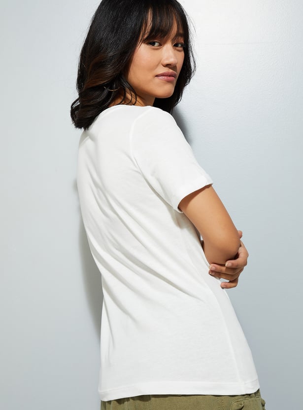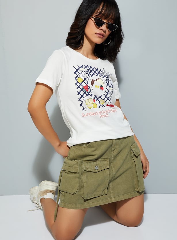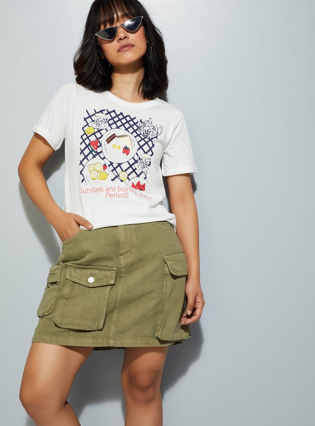 Show off your unique personality in this T-shirt. With its classic round neckline, short sleeves, and eye-catching graphic print, it's the perfect piece to express your urban style.