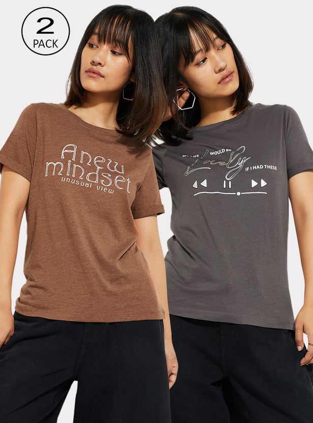URB_N Women Graphic Printed T-shirt - Pack of 2
