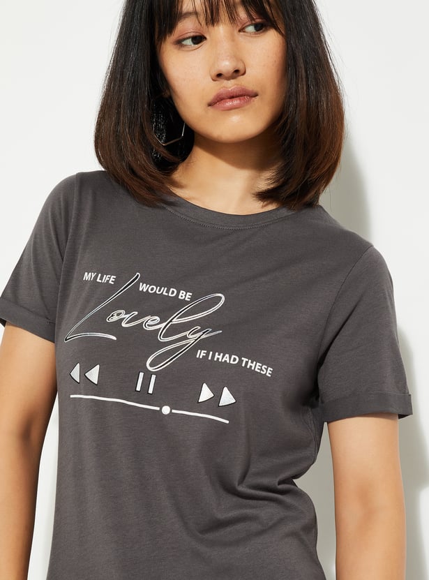 Show off your unique personality in this T-shirt. With its classic round neckline, short sleeves, and eye-catching graphic print, it's the perfect piece to express your urban style.
