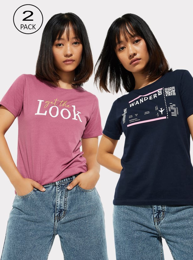URB_N Women Graphic Printed T-shirt - Pack of 2