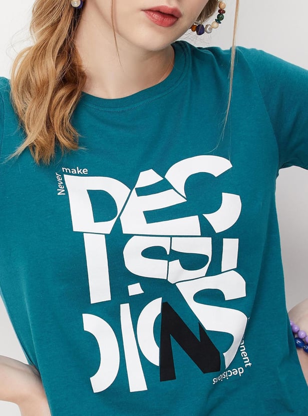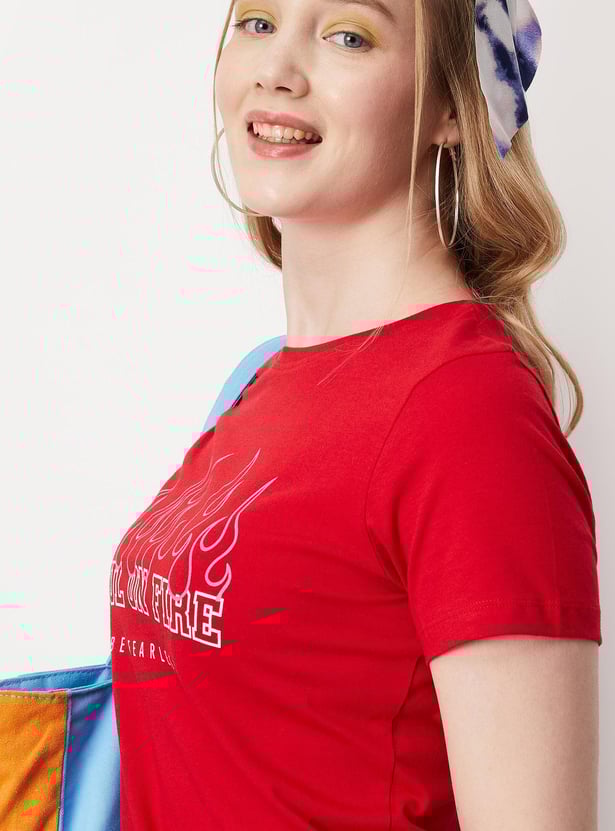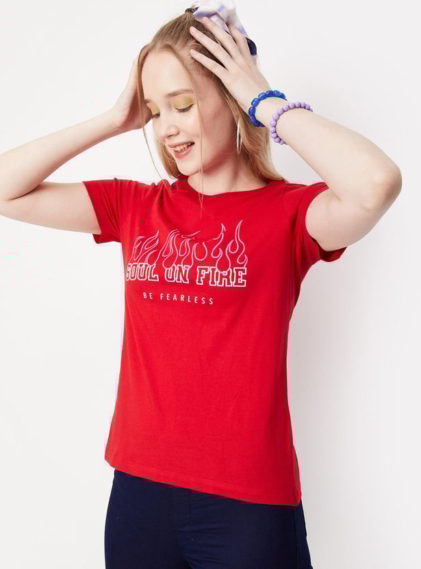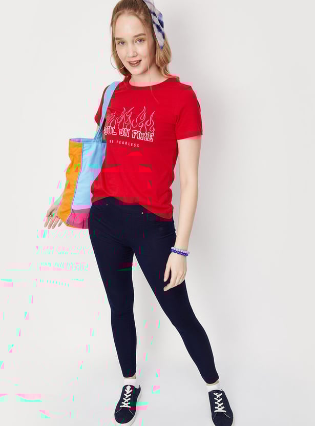 Show off your unique personality in this T-shirt. With its classic round neckline, half sleeves, and eye-catching graphic print, it's the perfect piece to express your urban style.