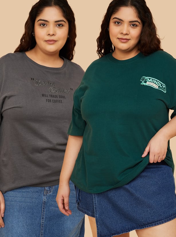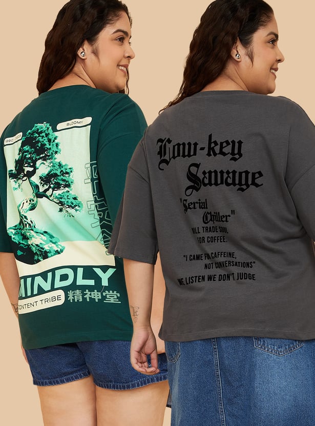 URB_N Women Graphic Printed T-shirts - Pack of 2
