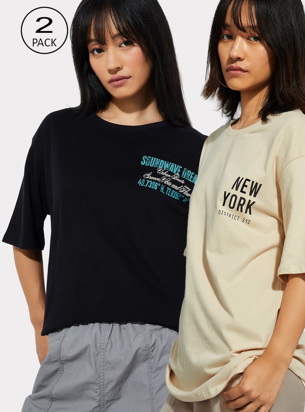 URB_N Women Printed Oversized T-shirt - Pack of 2