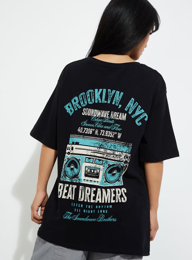 Refresh your casual collection with this pack of two printed oversized T-shirts. Featuring a classic round neck and easy half sleeves, these tees bring versatile charm to your wardrobe