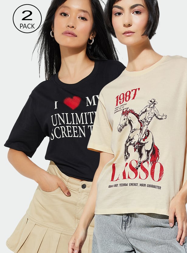 URB_N Women Printed T-shirt - Pack of 2