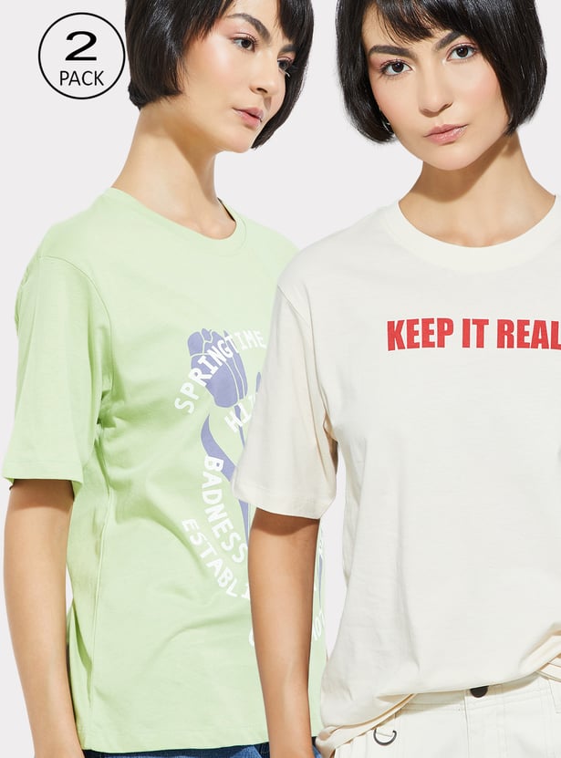 Update your everyday essentials with this pack of two printed T-shirts. Designed with a classic round neck and half sleeves, these versatile tees offer effortless comfort and style.