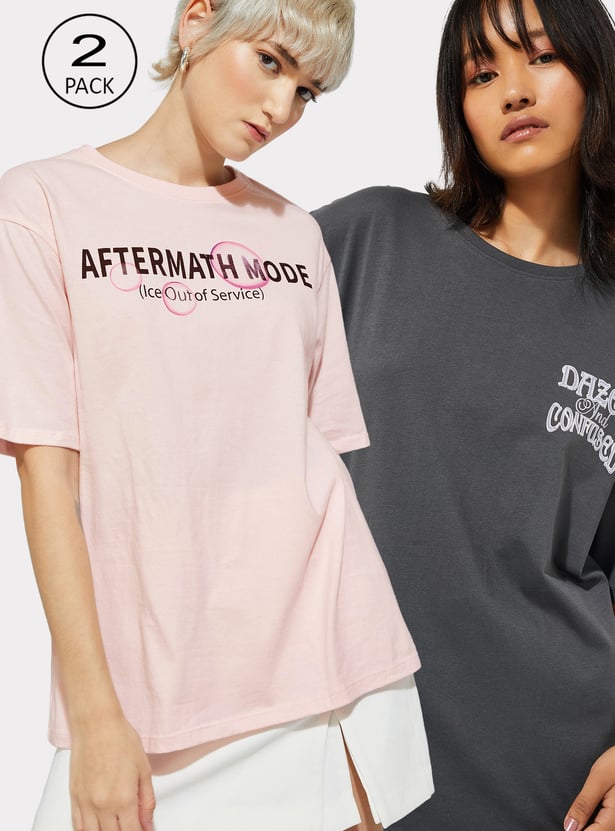 Update your everyday essentials with this pack of two printed T-shirts. Designed with a classic round neck and half sleeves, these versatile tees offer effortless comfort and style.