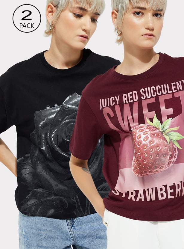 Simple yet essential, this pack of two printed T-shirts with round neck and half sleeves delivers everyday comfort and timeless style.