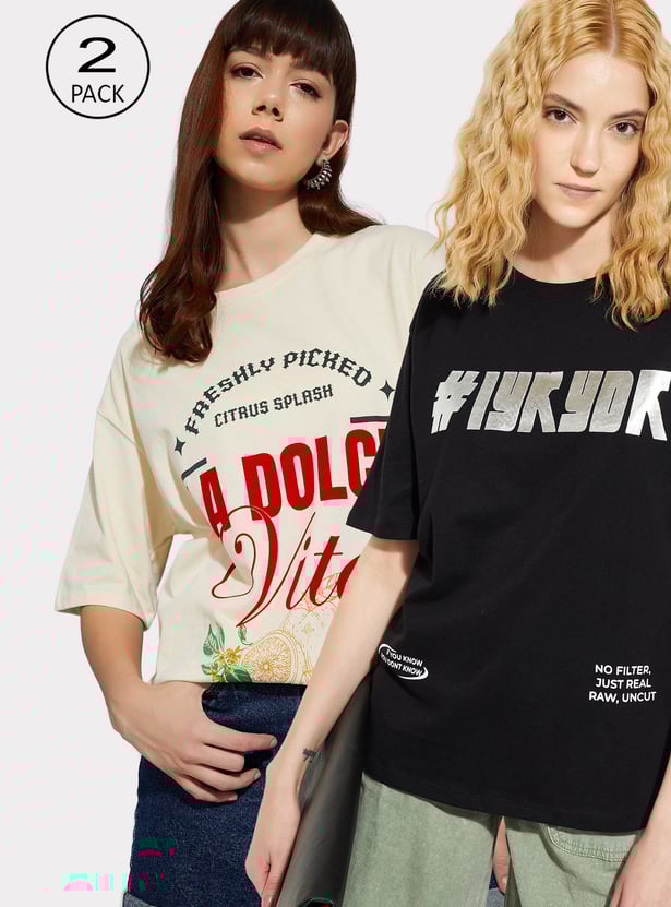 A versatile pack of printed T-shirts featuring a classic round neck and half sleeves for easy, everyday wear. Designed with clean, simple prints that add a soft pop of personality.