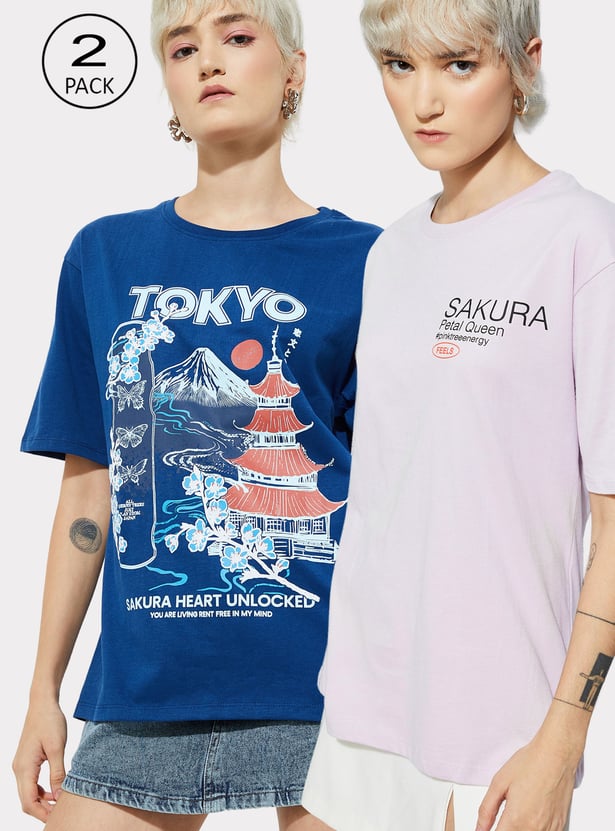A versatile duo, this pack includes two printed T-shirts designed with a classic round neckline and comfortable half sleeves. Perfect for everyday wear, the prints add personality while the soft fabric ensures all-day ease.