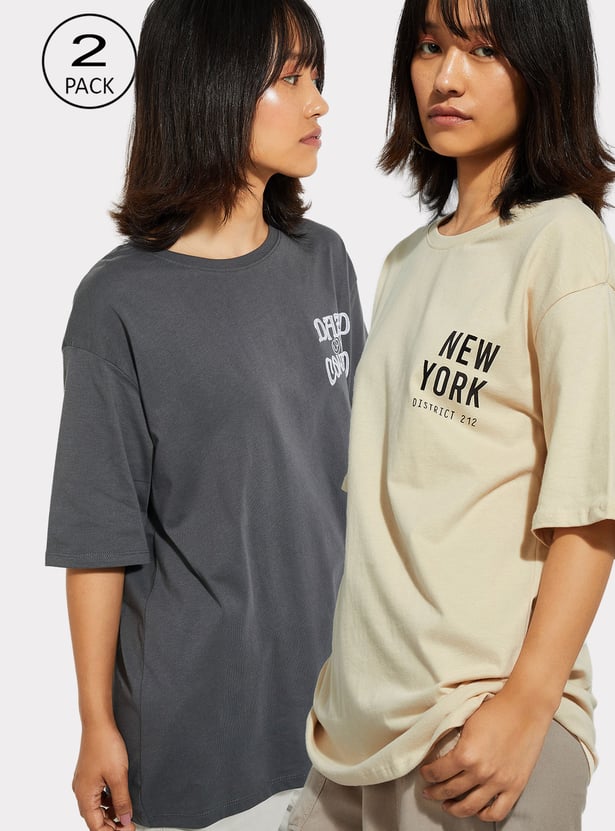 A casual wardrobe essential, this pack includes two printed T-shirts designed with a classic round neck and half sleeves. Comfortable and versatile, they add variety to your everyday outfits.