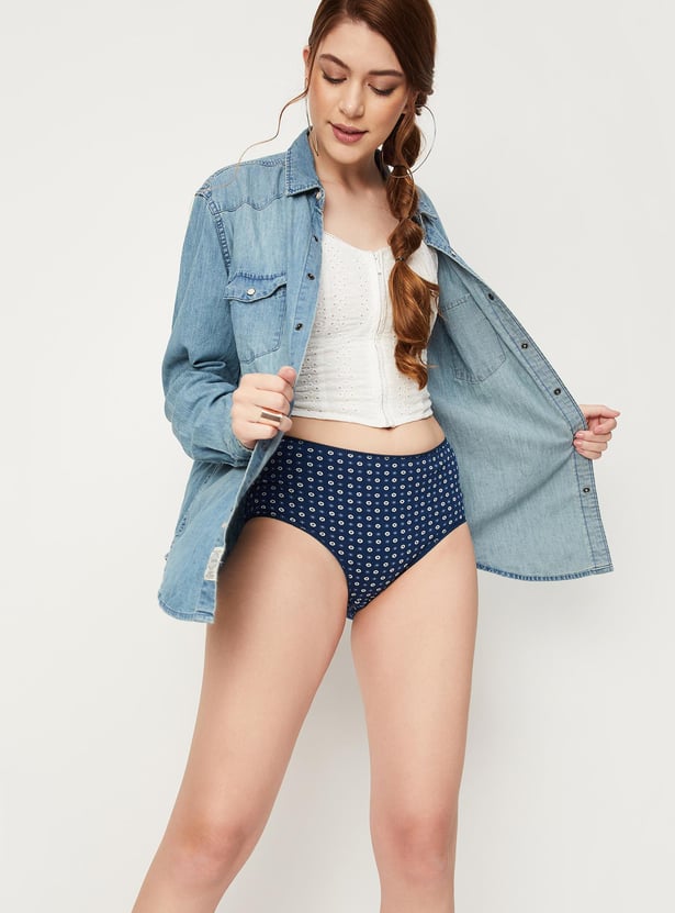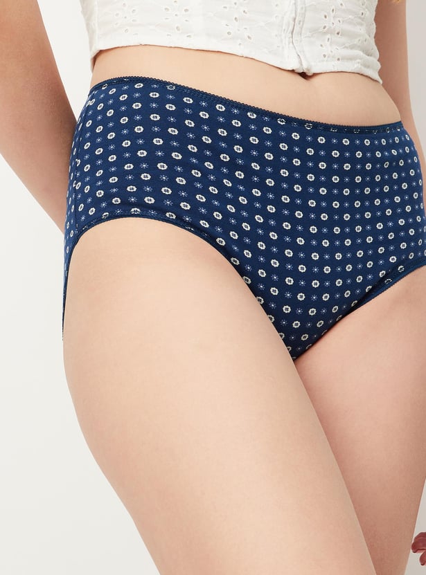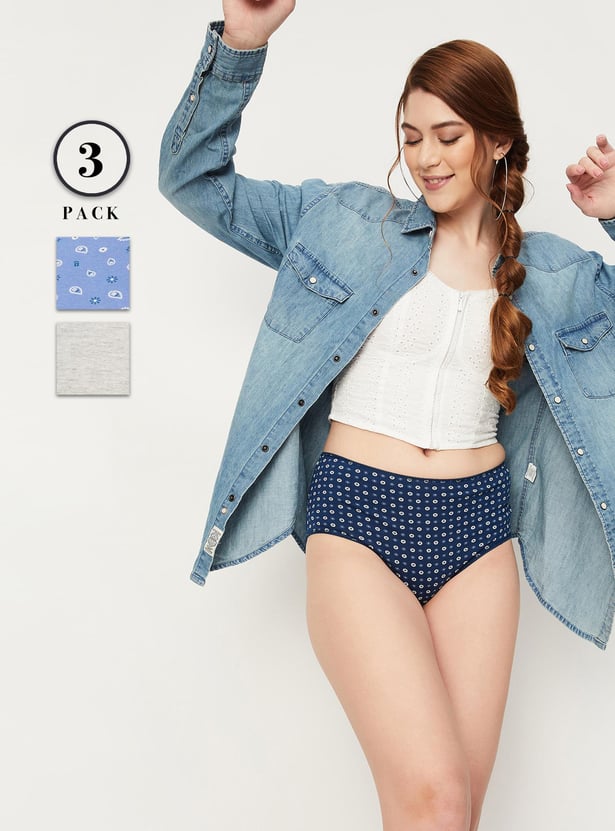 Update your basic collection with this set of full brief panties. This pack includes 2 panties with assorted prints and a pair of solid panties. Made of soft absorbent fabric, these panties feature a soft and smooth inner waistband and a below-waistline fit.