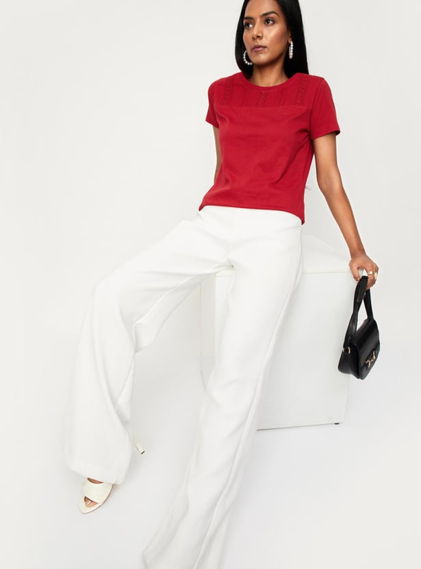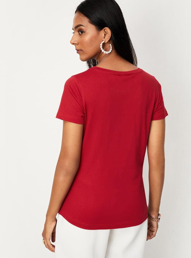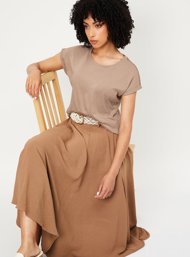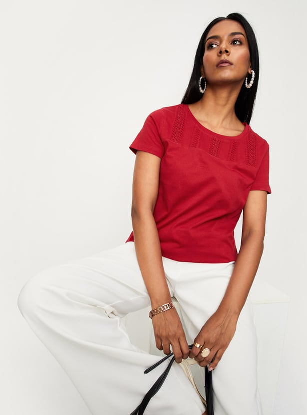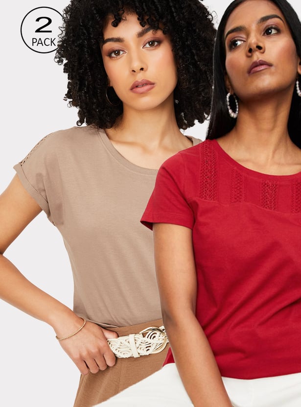 Elevate your basics with this pack of 2 assorted T-shirts. Featuring a classic round neck and half sleeves, they add a touch of charm to everyday wear.