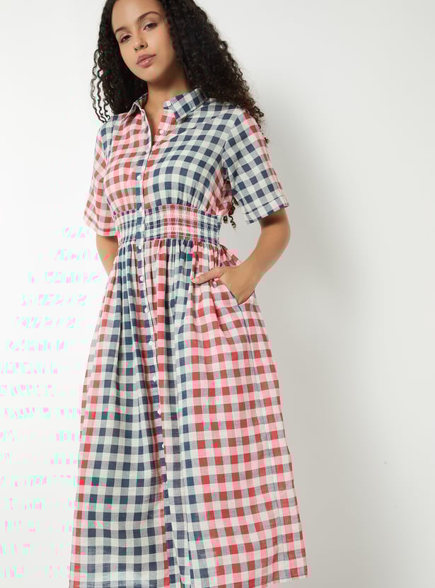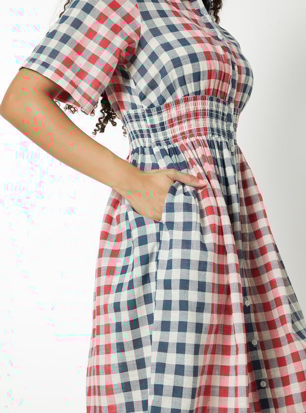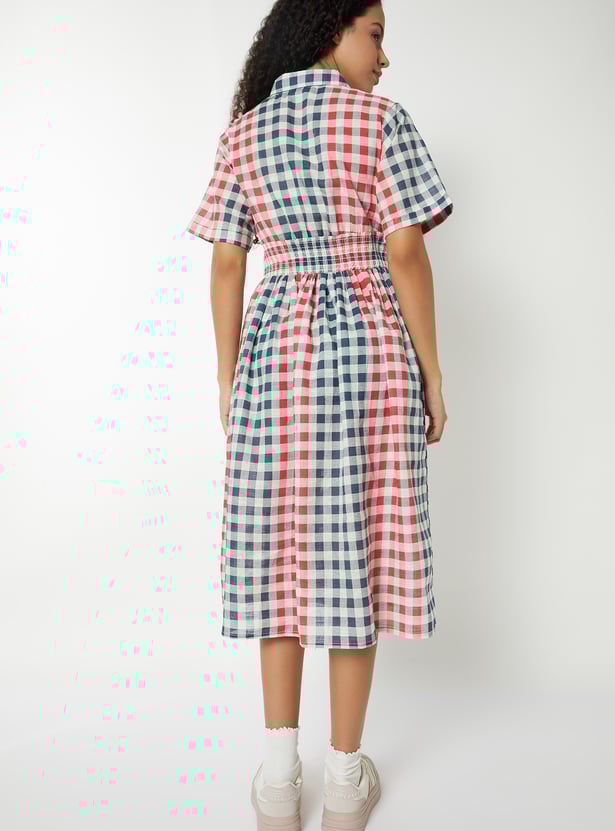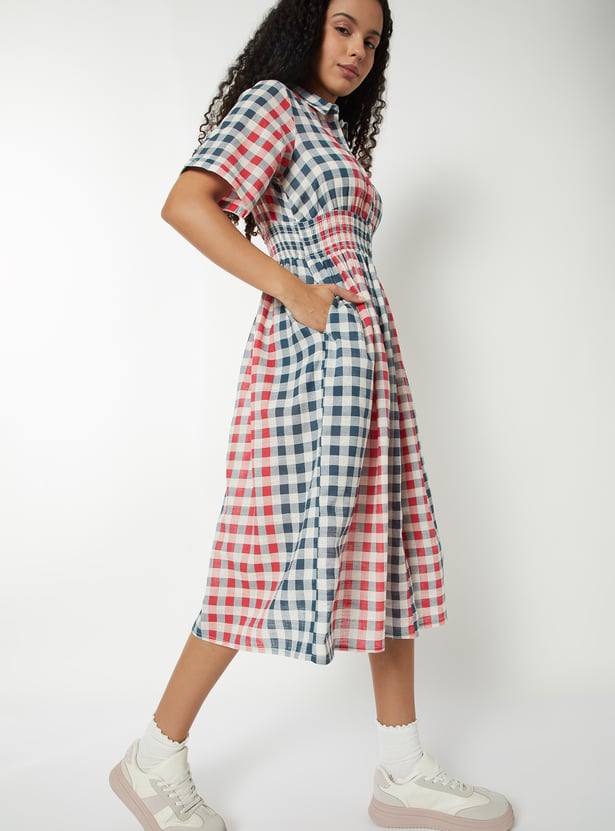 Women Checked A-line Shirt Dress