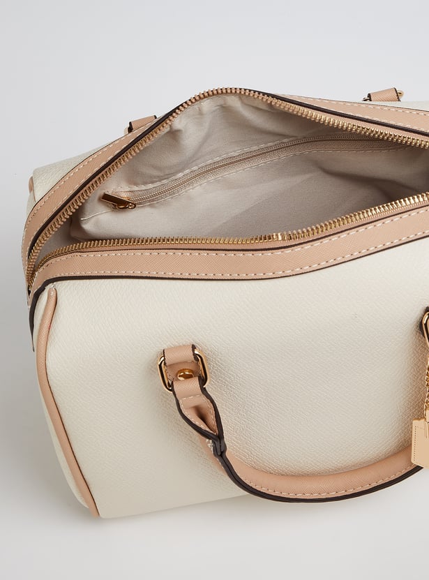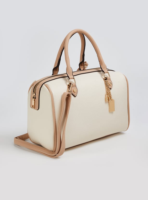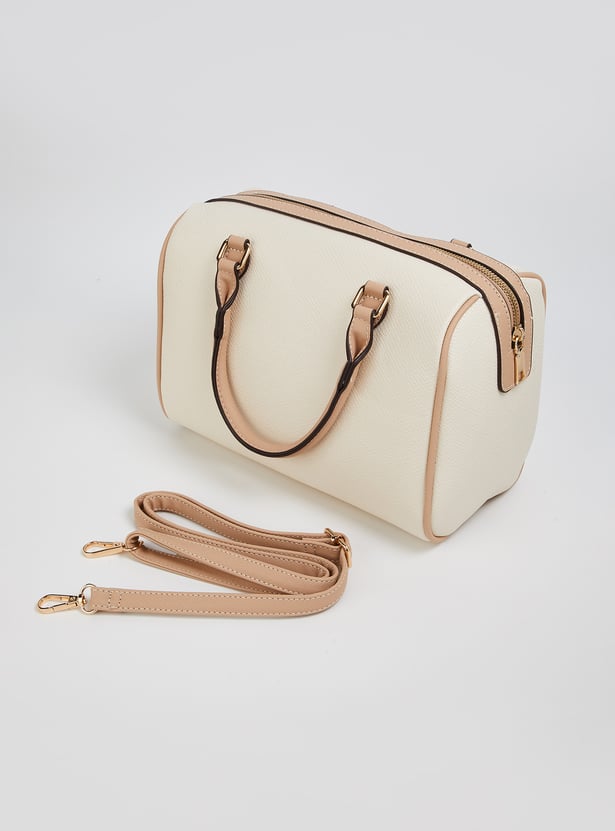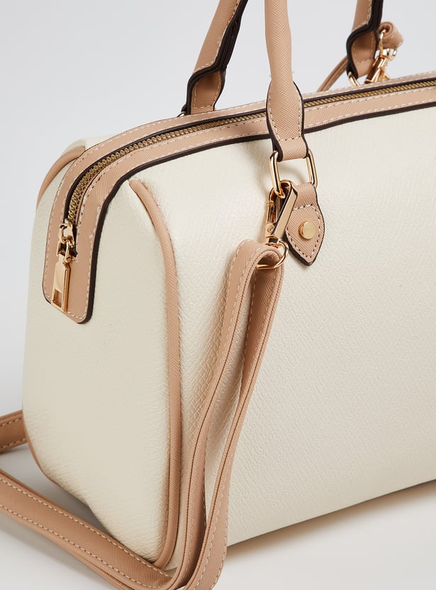 Travel in style with this contrast detail duffle bag, featuring twin loop handles, a secure zip closure, and an adjustable sling strap for versatile carrying. Spacious and durable, it's perfect for weekend getaways or gym sessions.