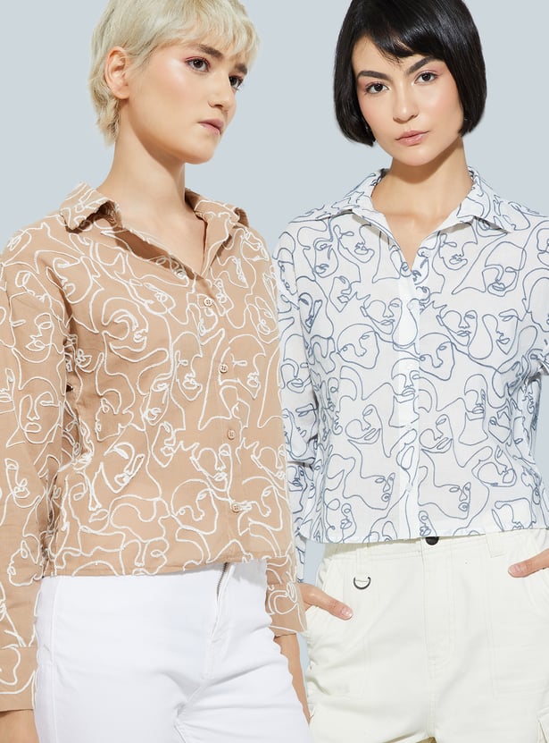 Women Embroidered Regular Fit Shirt - Pack of 2
