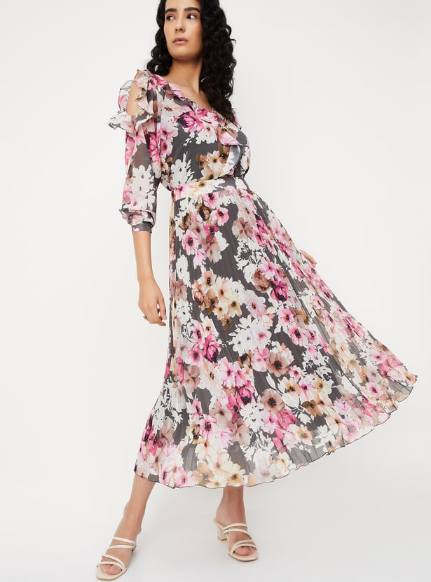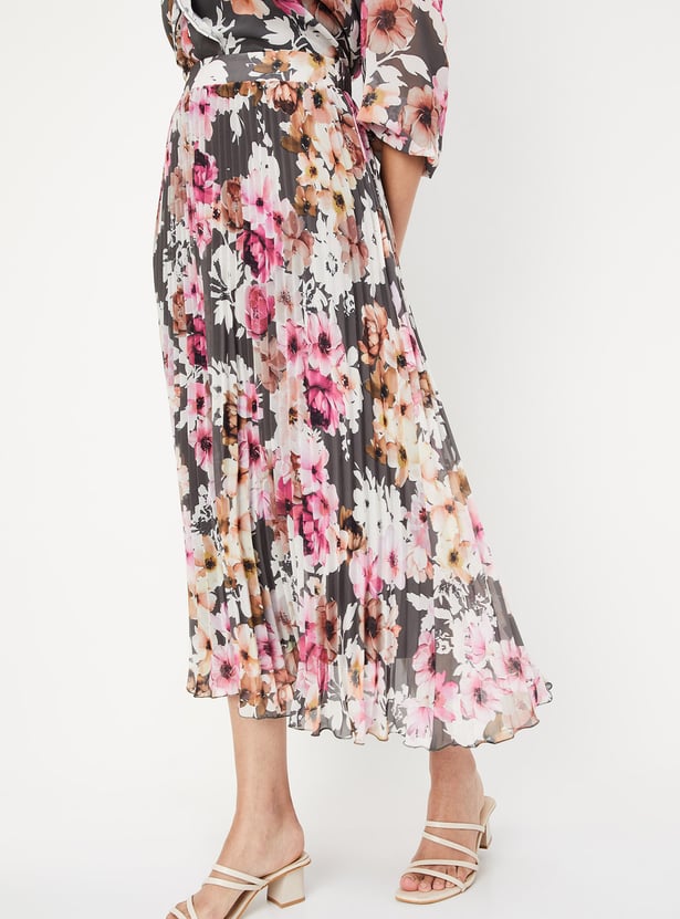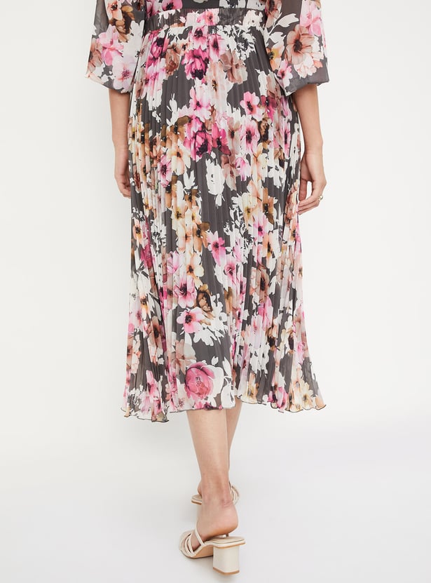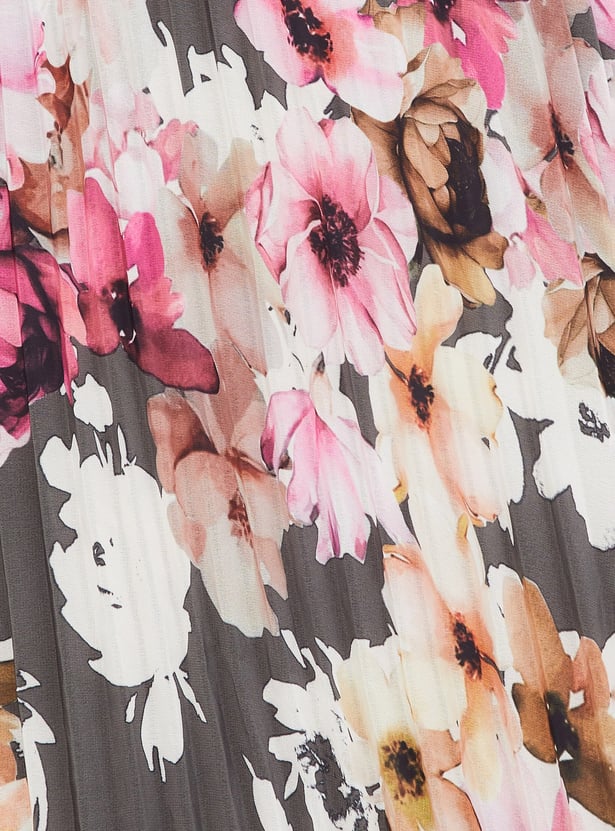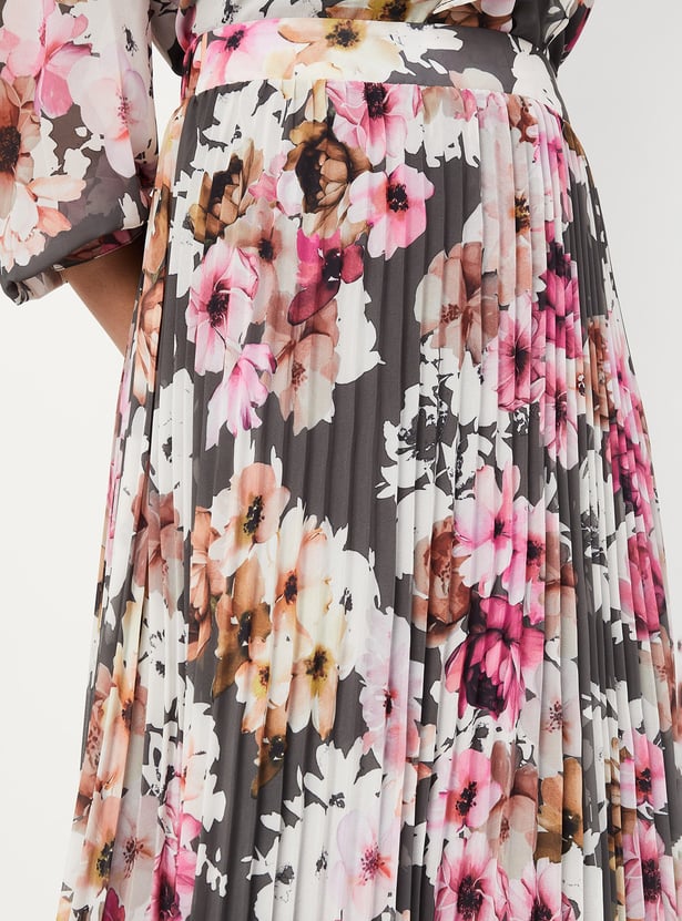 Chic and elegant, this pleated skirt is sure to liven up your wardrobe. It features a partially elasticated waist, a floral printed design, and a stylish midi profile.