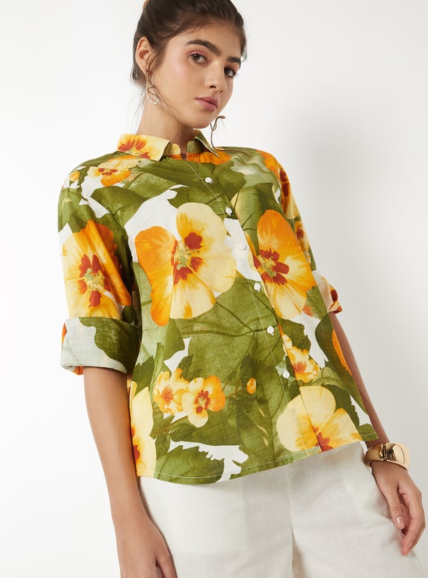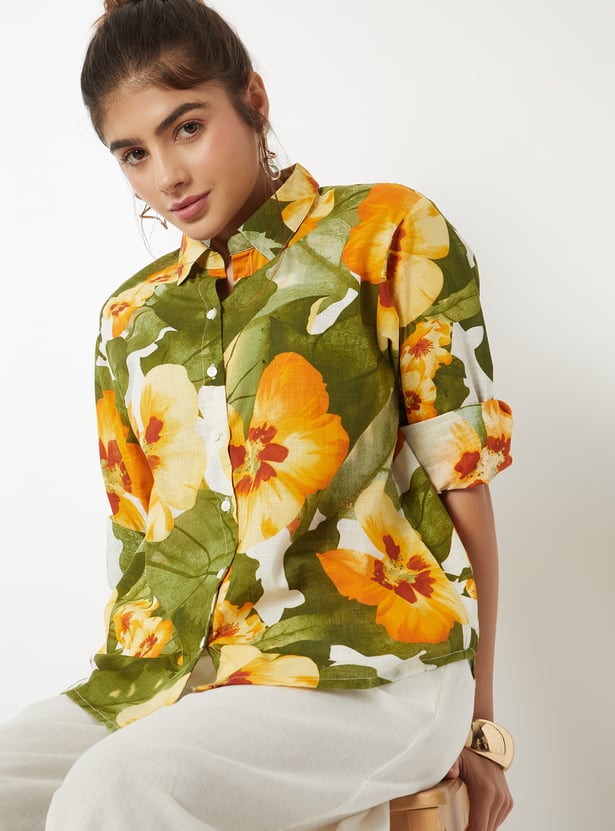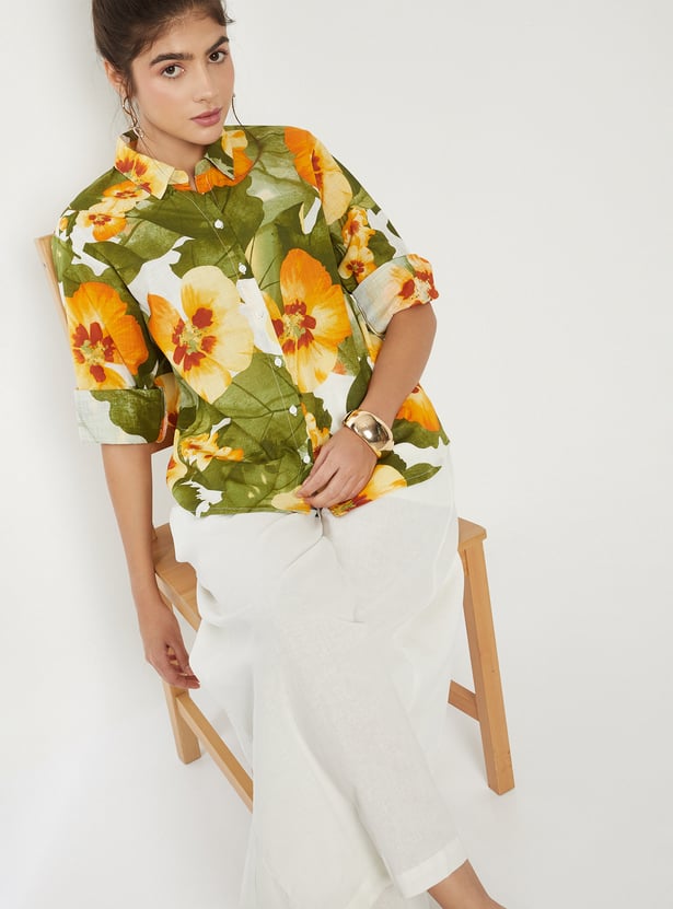 Refresh your everyday wardrobe with this floral printed shirt, tailored with a classic spread collar and a neat button placket. Designed with full sleeves for a relaxed feel, it offers a comfortable fit that’s perfect for warm-weather styling.