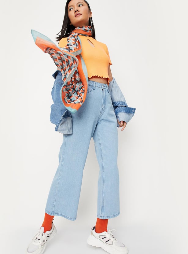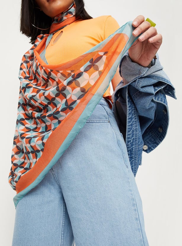 Style your ensemble with this peppy scarf that's designed with vibrant geometric prints. This piece goes with any outfit and is a must-have in your casual wardrobe.