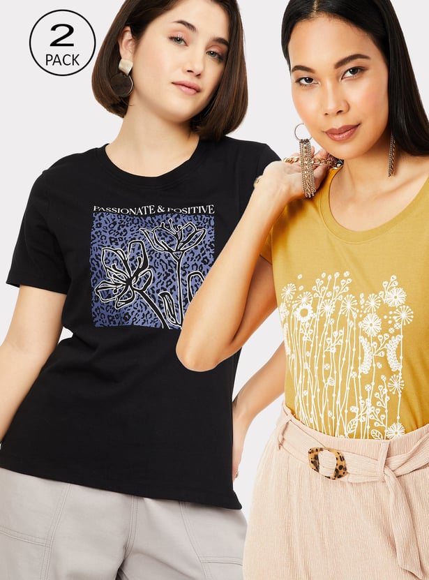 Women Graphic Print T-shirt - Pack of 2