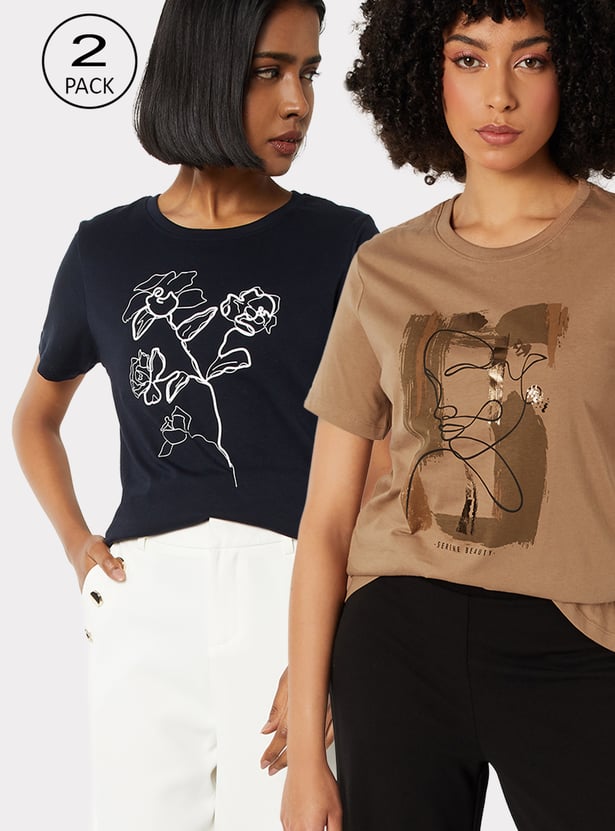 Women Graphic Print T-shirt - Pack of 2