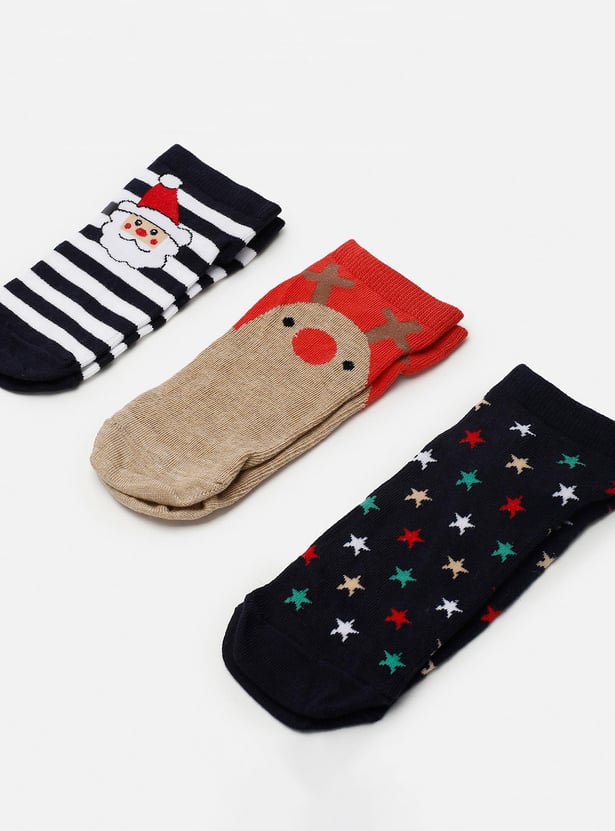 Let this winter bring on a stylish twist to your wardrobe with this socks set. It is designed with a Christmas-themed print on the surface, an ankle-length construction, and a soft material.