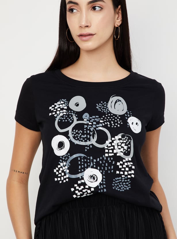 Show off your unique personality in this T-shirt. With its classic round neckline, short sleeves, and eye-catching graphic print on the front, it's the perfect piece to express your style.
