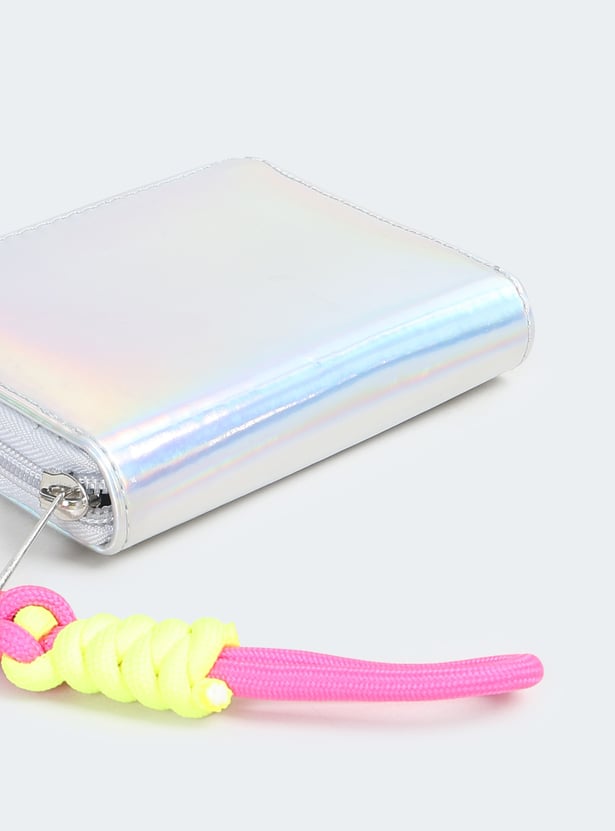 This holographic zip-around wallet adds a touch of shine to your everyday essentials. Designed with two spacious main compartments, it offers both style and practicality for daily use.