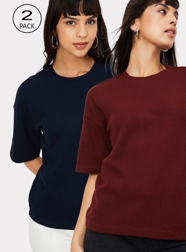 Upgrade your casual wardrobe with these knit T-shirts designed for everyday style. Featuring a classic round neck and half sleeves, it offers comfortable wear with a modern appeal.