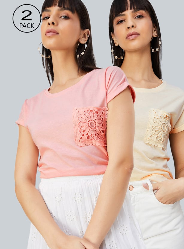 Women Lace Detail T-shirt - Pack of 2