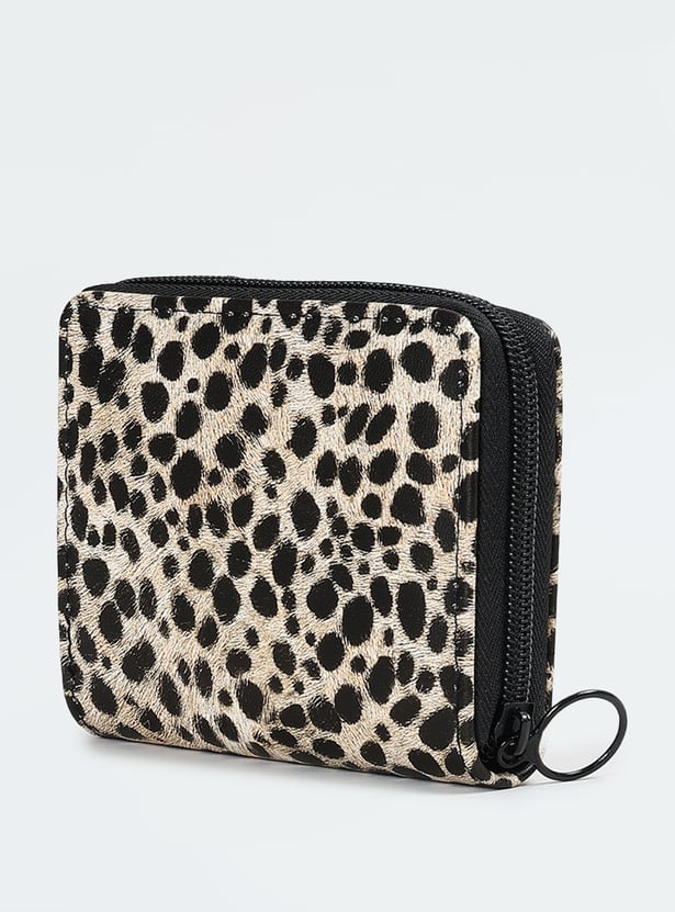Women Leopard Print Zip Around Wallet