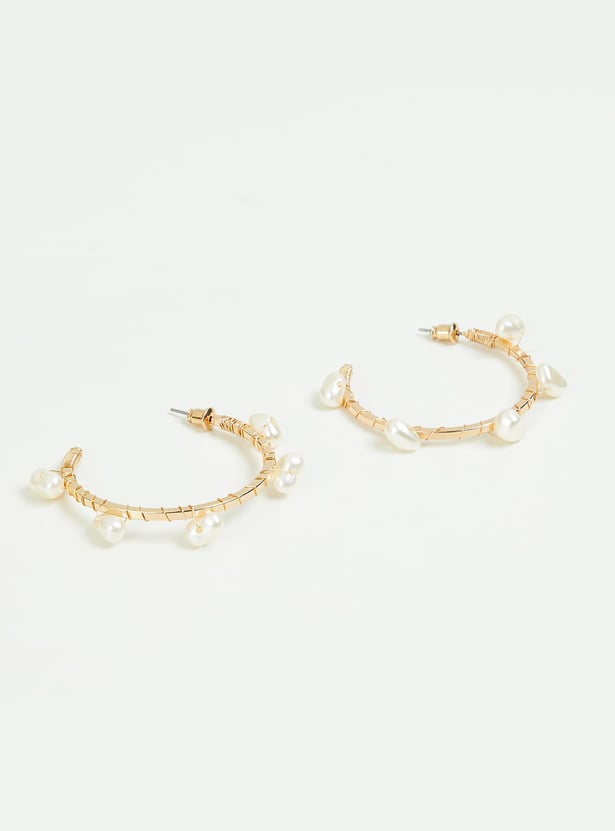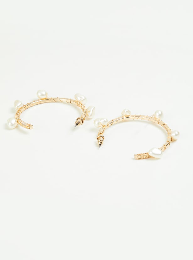 Women Pearl Embellished Hoop Earrings