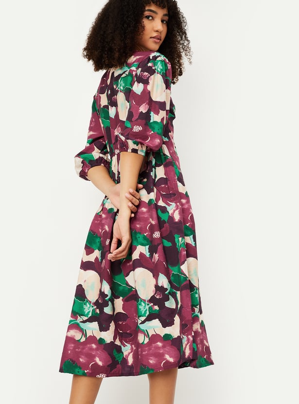 Women Printed A-line Midi Dress