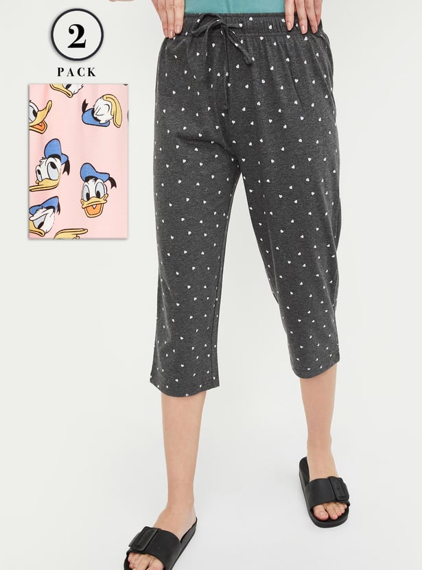 Add playful charm to your everyday wear with this pack of two printed capris, designed for comfort and ease. Featuring a secure drawstring closure, one pair comes with a fun Donald Duck print, while the other keeps it versatile for casual styling.