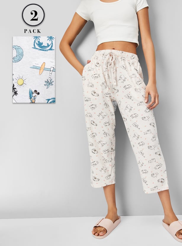 Add a fun twist to your loungewear with this pack of 2 Mickey Mouse printed capris. Crafted from soft, breathable fabric, each pair features convenient pockets and a drawstring closure for a comfy, adjustable fit. Perfect for relaxed days, quick errands, or cosy evenings at home.