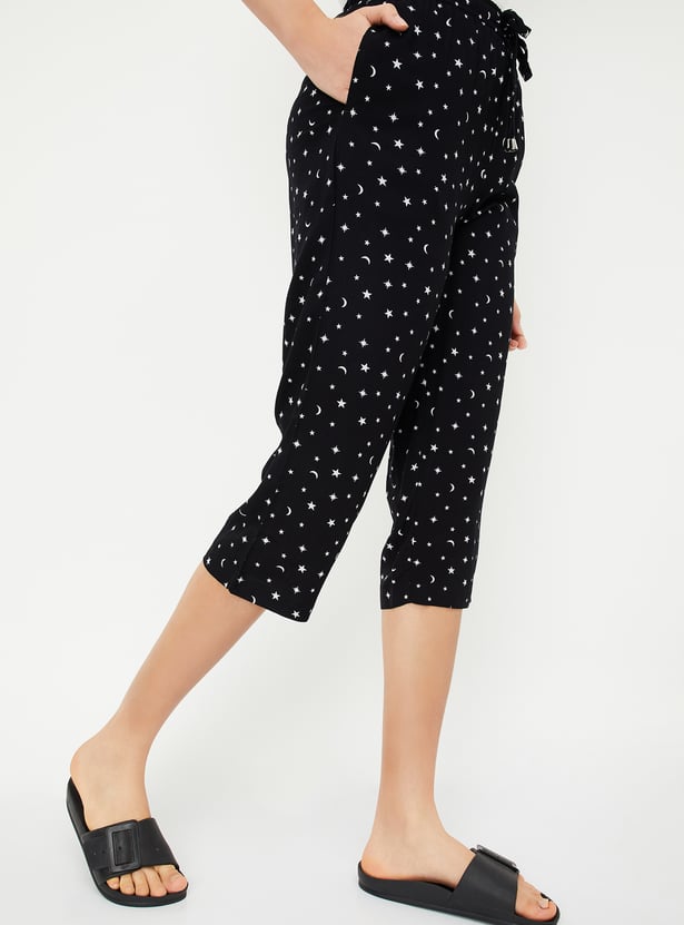 Add playful charm to your loungewear with these printed capris. Crafted from soft, breathable fabric, they feature pockets and a drawstring waist for relaxed, adjustable comfort.
