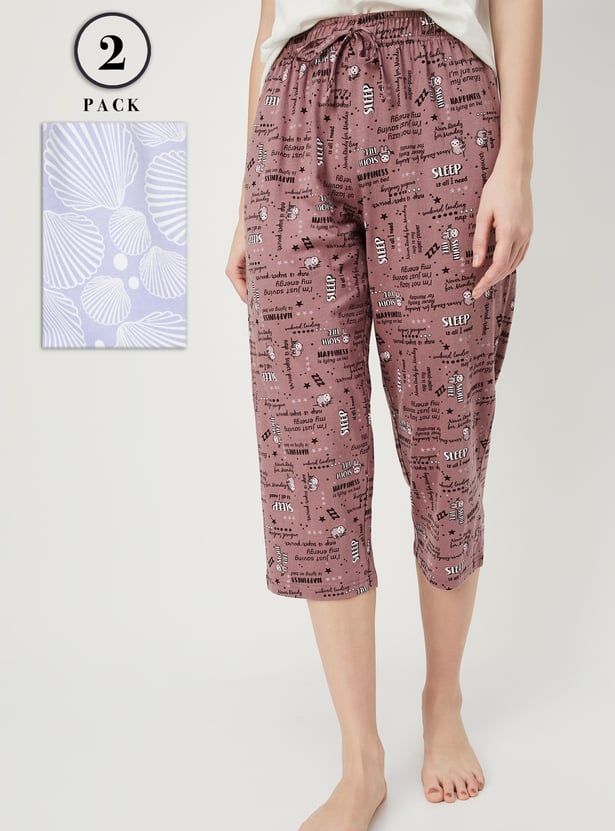 Add a fun twist to your loungewear with this pack of 2 printed capris. Crafted from soft, breathable fabric, each pair features convenient pockets and a drawstring closure for a comfy, adjustable fit.