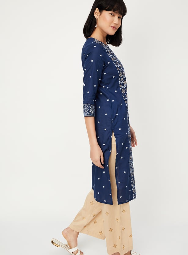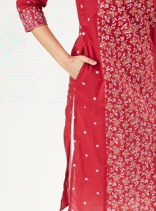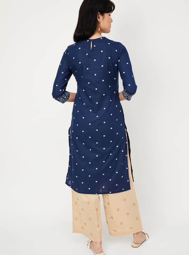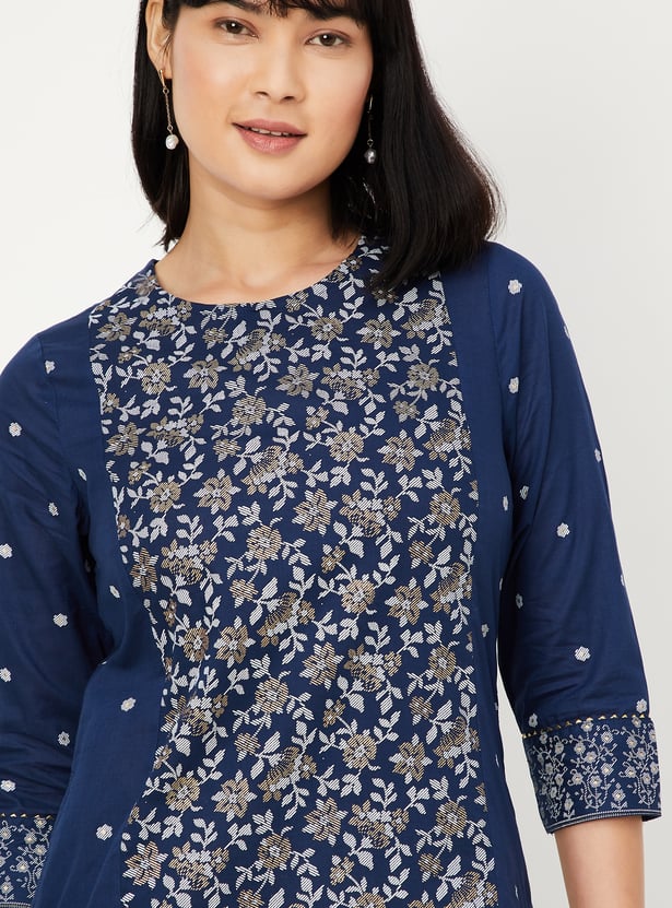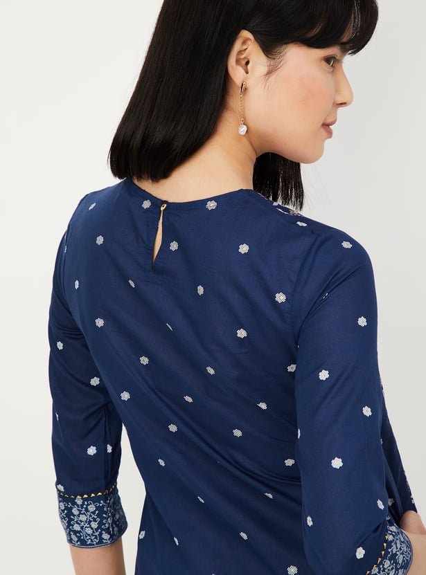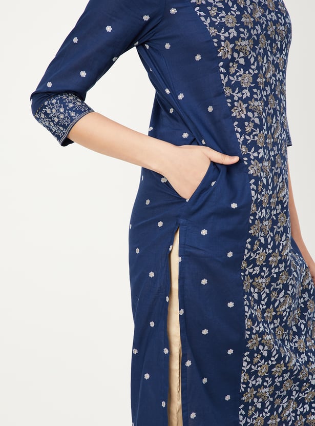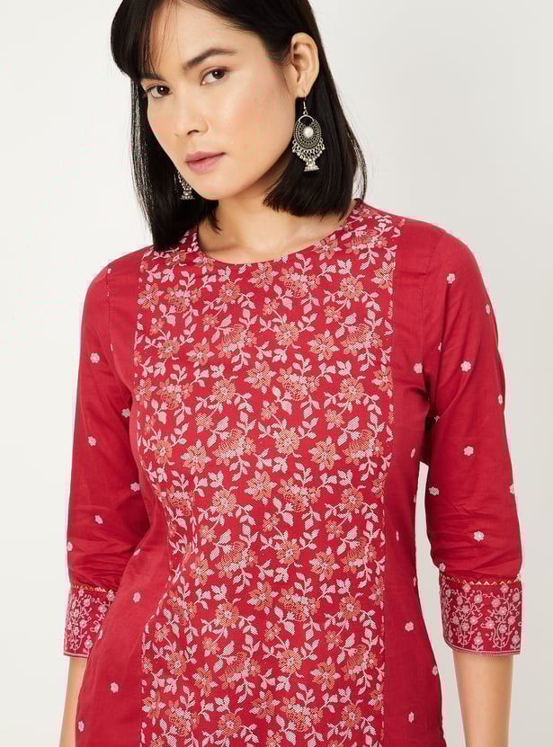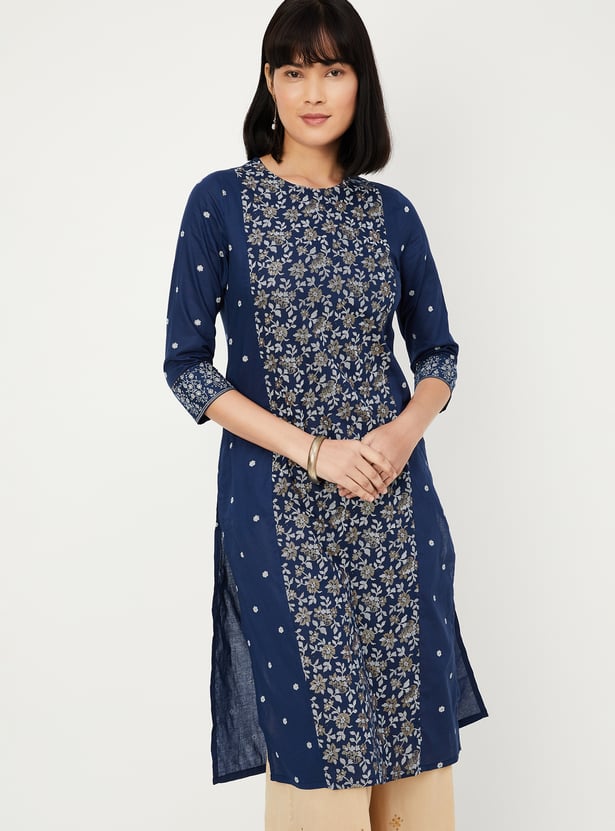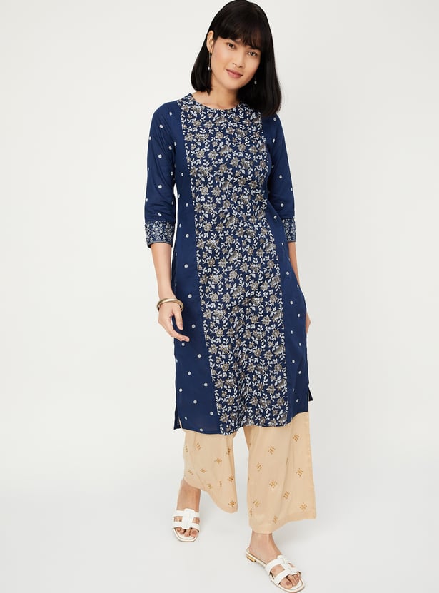 This pack of two printed kurtas features round necklines, 3/4th sleeves, and a thoughtfully placed side pocket for everyday ease. A printed panel on the front adds visual interest while keeping the silhouette clean.
