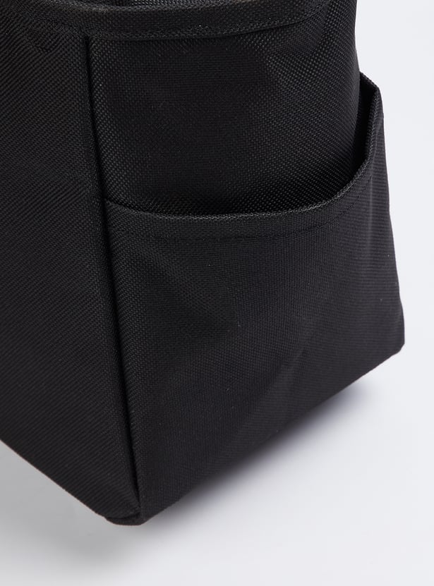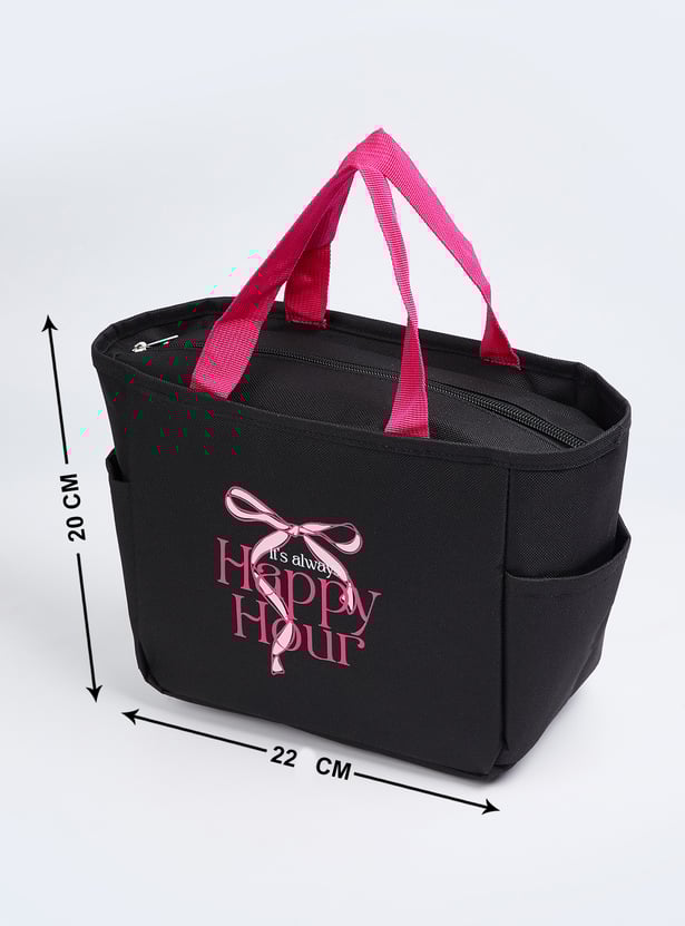Functional and stylish, this printed lunch bag features twin handles, a zip closure, and an insulated inner lining to keep your meals fresh and at the right temperature for hours