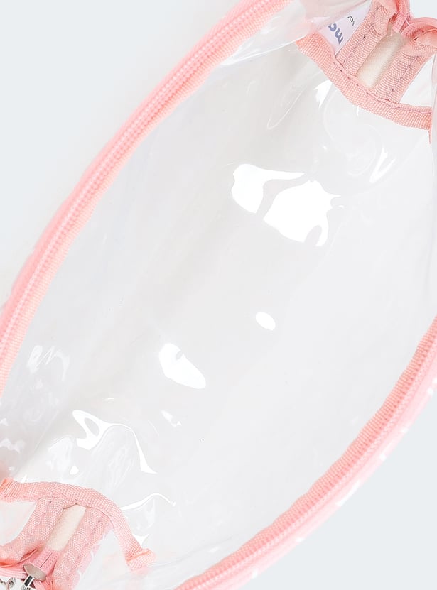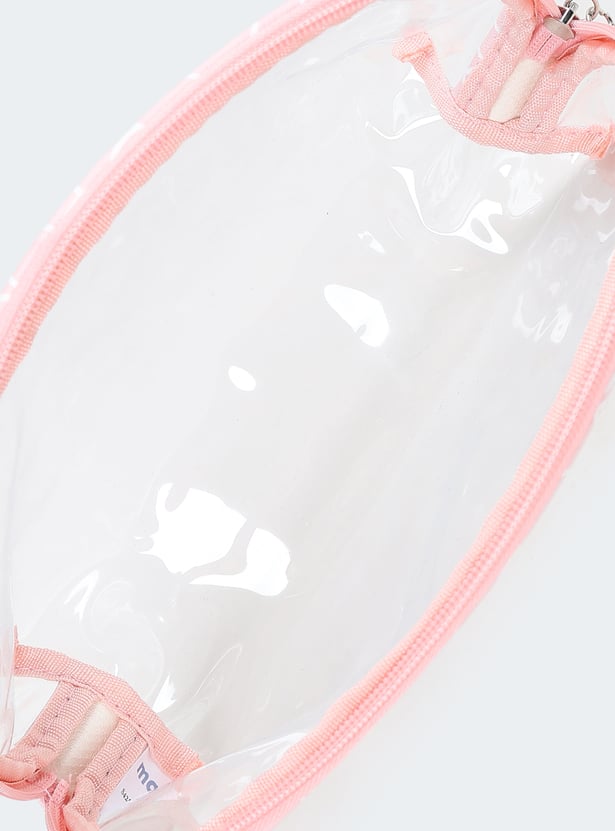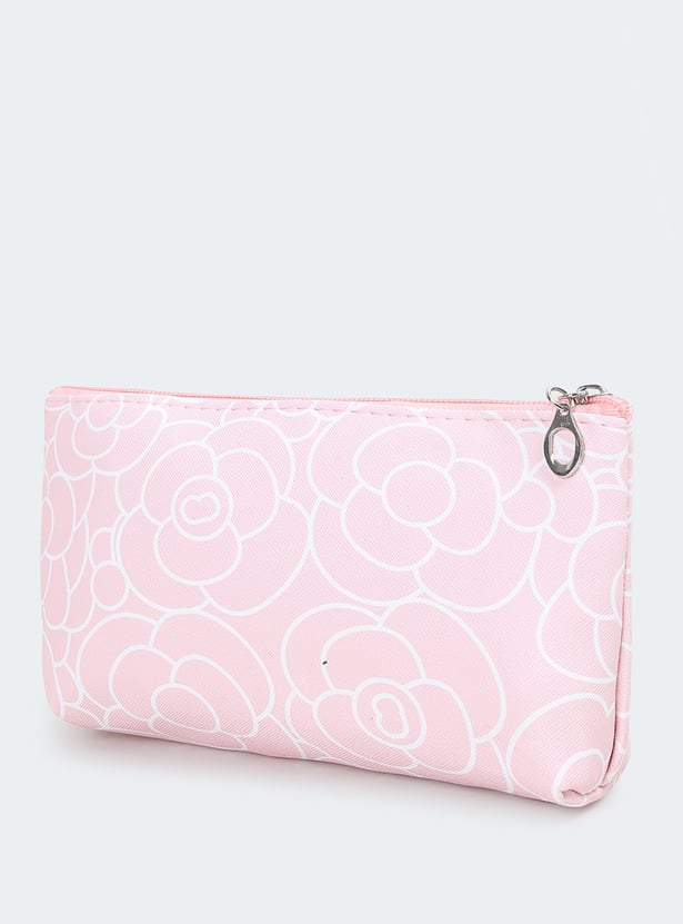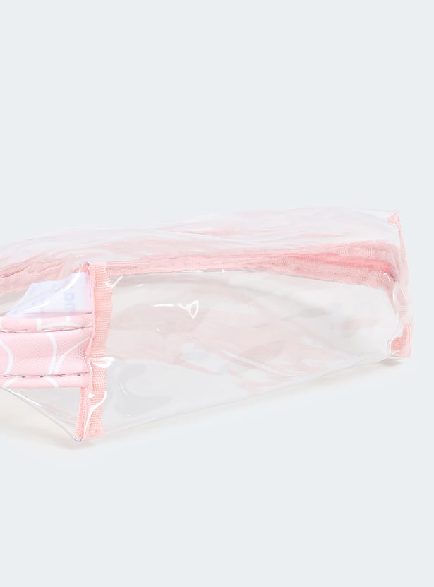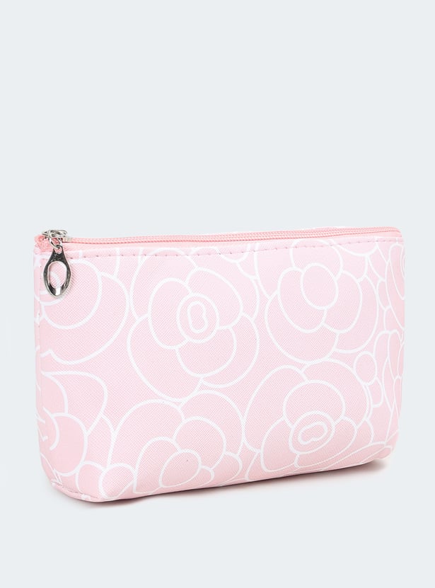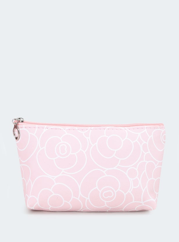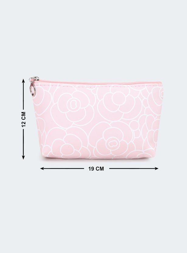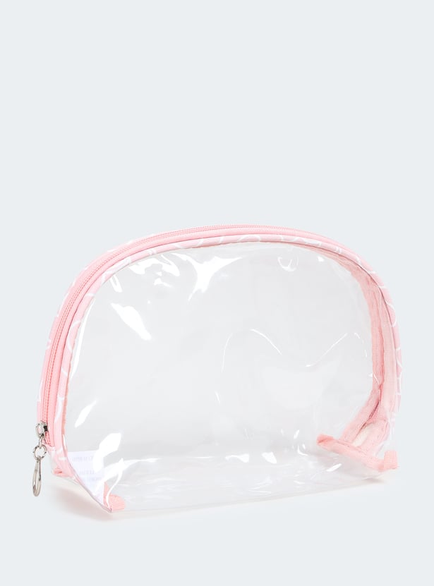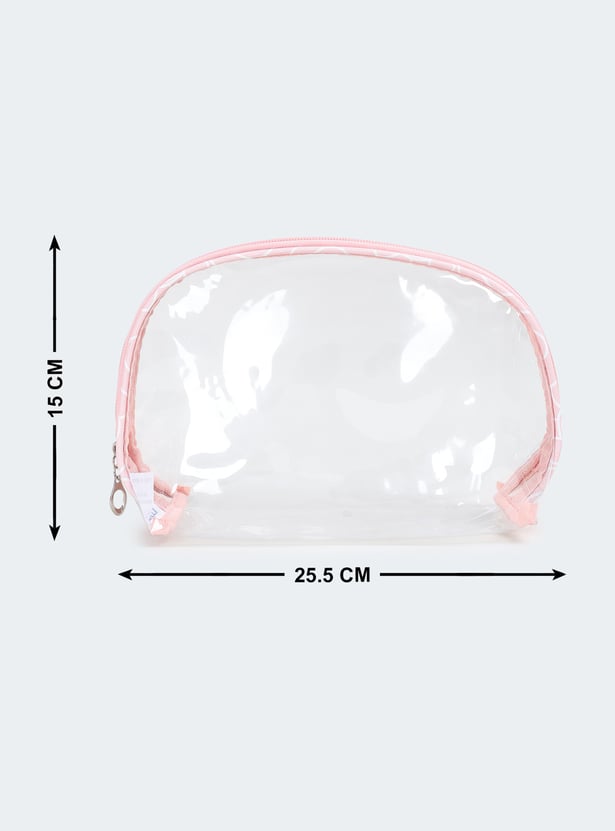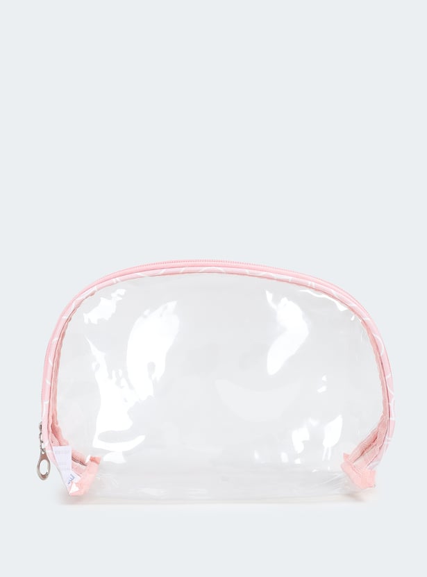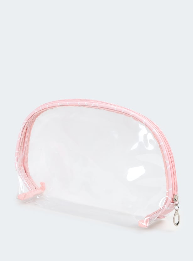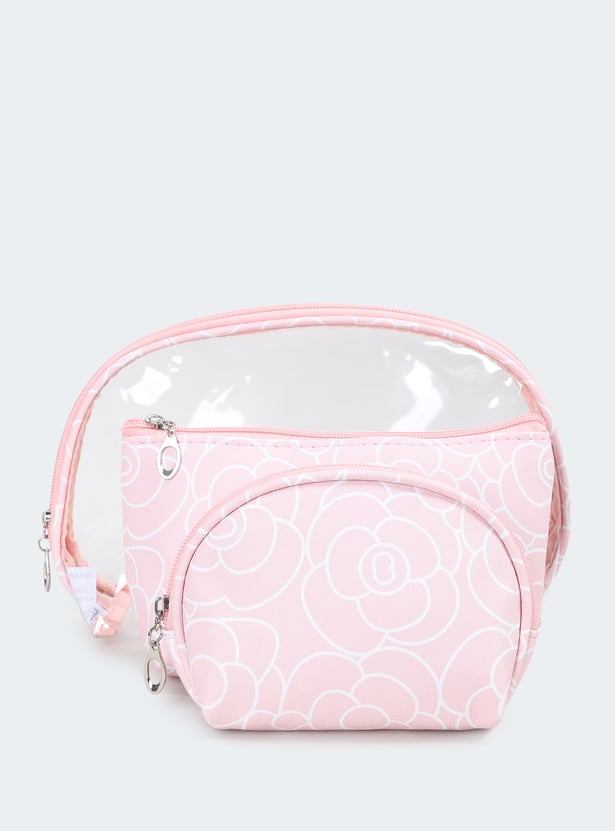 This set of 3 printed pouches includes big, medium, and small sizes for all your essentials. The large pouch features a transparent design, while the other two come in stylish prints — all with secure zip closures and a single compartment for easy organisation.